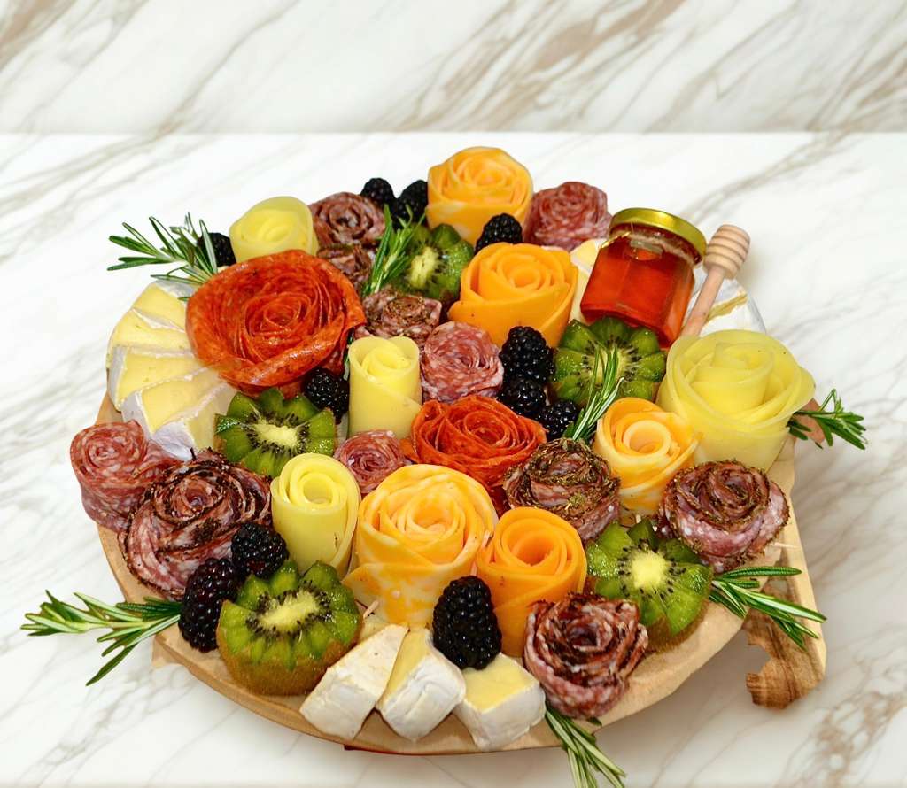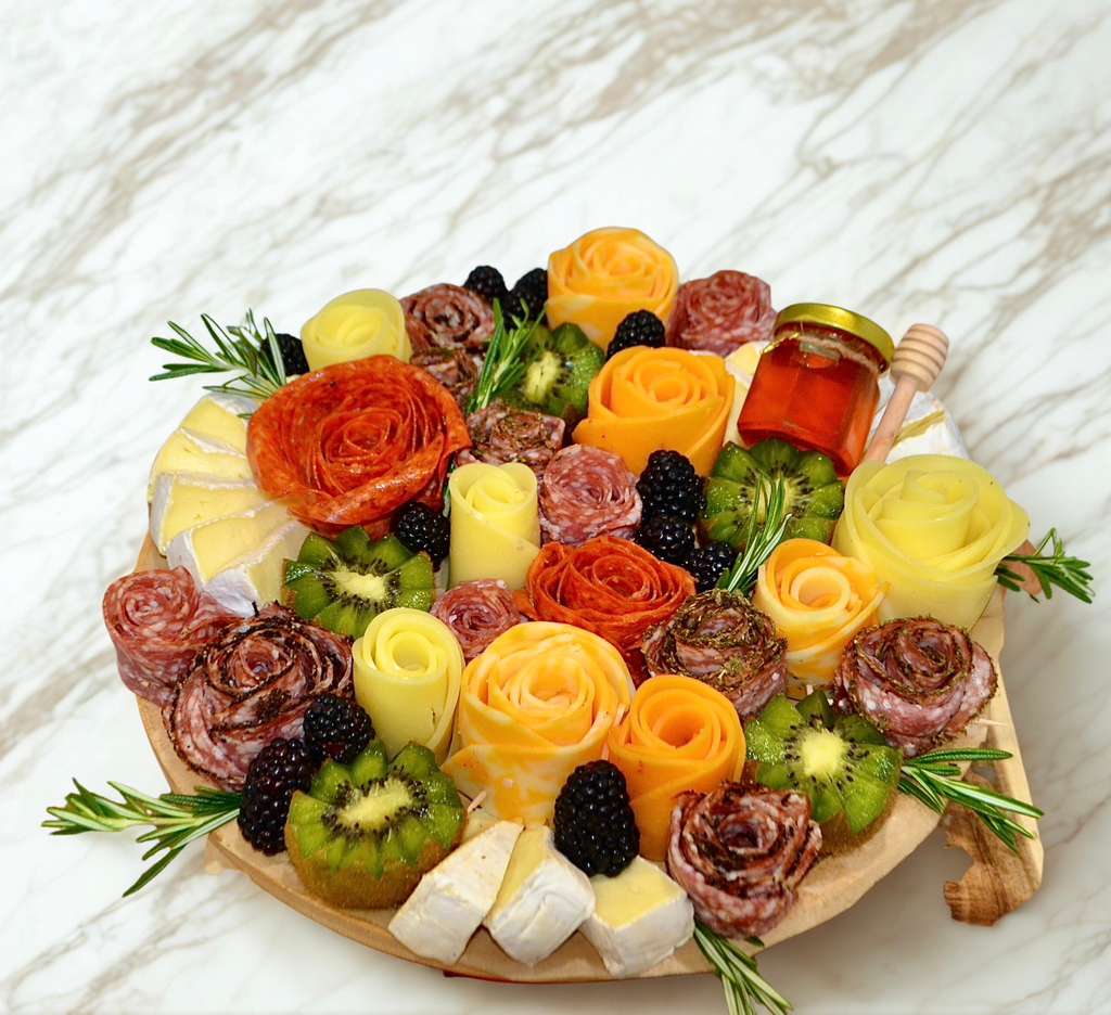 4 luxury cheeses,4 premium charcuterie selections,fresh seasonal fruit,and honey.(Serves 6–10 people)